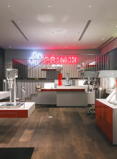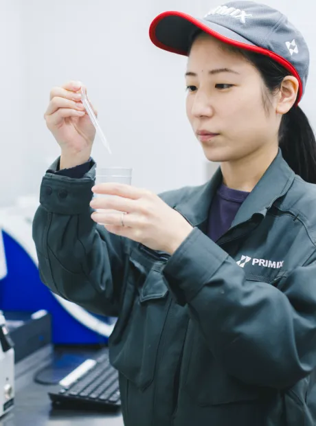 プライミクスは、「混ぜる」技術で医薬品、化粧品、電池や機能性材料などの幅広い分野のものづくりを支える、高速攪拌機メーカーです。