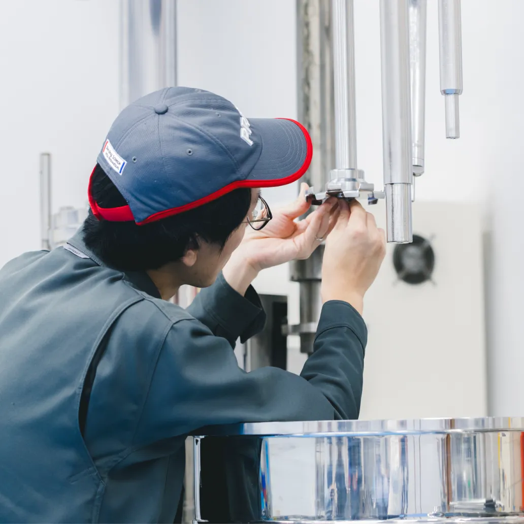 目的や用途に合わせた攪拌機の完全受注生産と、ヒアリングから開発、テスト、導入後まで一貫したサポート体制で、お客様のニーズに丁寧に応えます。