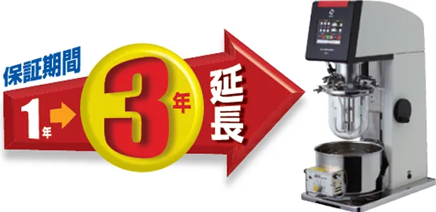 プライミクスの研究機は、3年保証です。お客様にご購入後も安心してお使いいただけるよう、ご購入時に保証期間延長の手続きをしていただくことで3年保証としております。