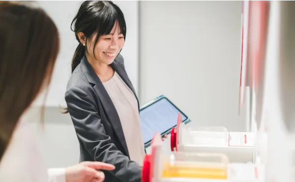 大切にしているのは、ただ攪拌機をお届けするだけでなく、お客様と一緒に攪拌に関わる課題を解決していくこと。お客様のご要望に寄り添い、すべての職種がコミュニケーションをとり協力して真摯に取り組んでいます。